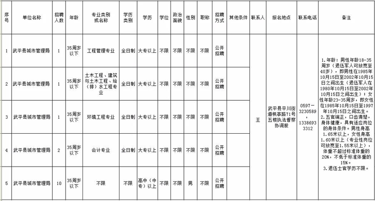4.本招聘簡章的最終解釋權歸武平縣城市管理局。