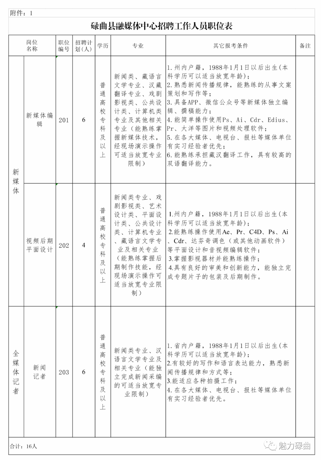 附件:《碌曲縣融媒體中心招聘工作人員職位表》