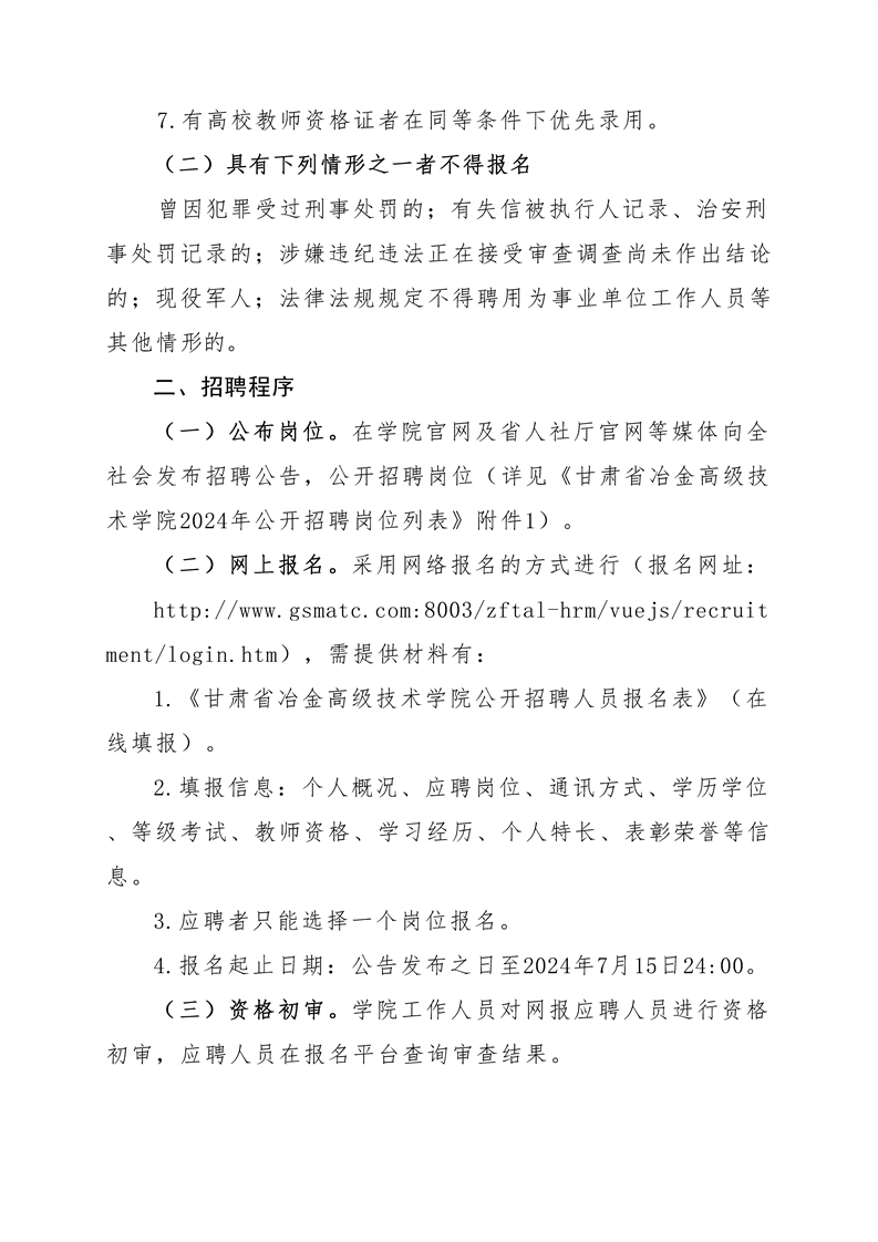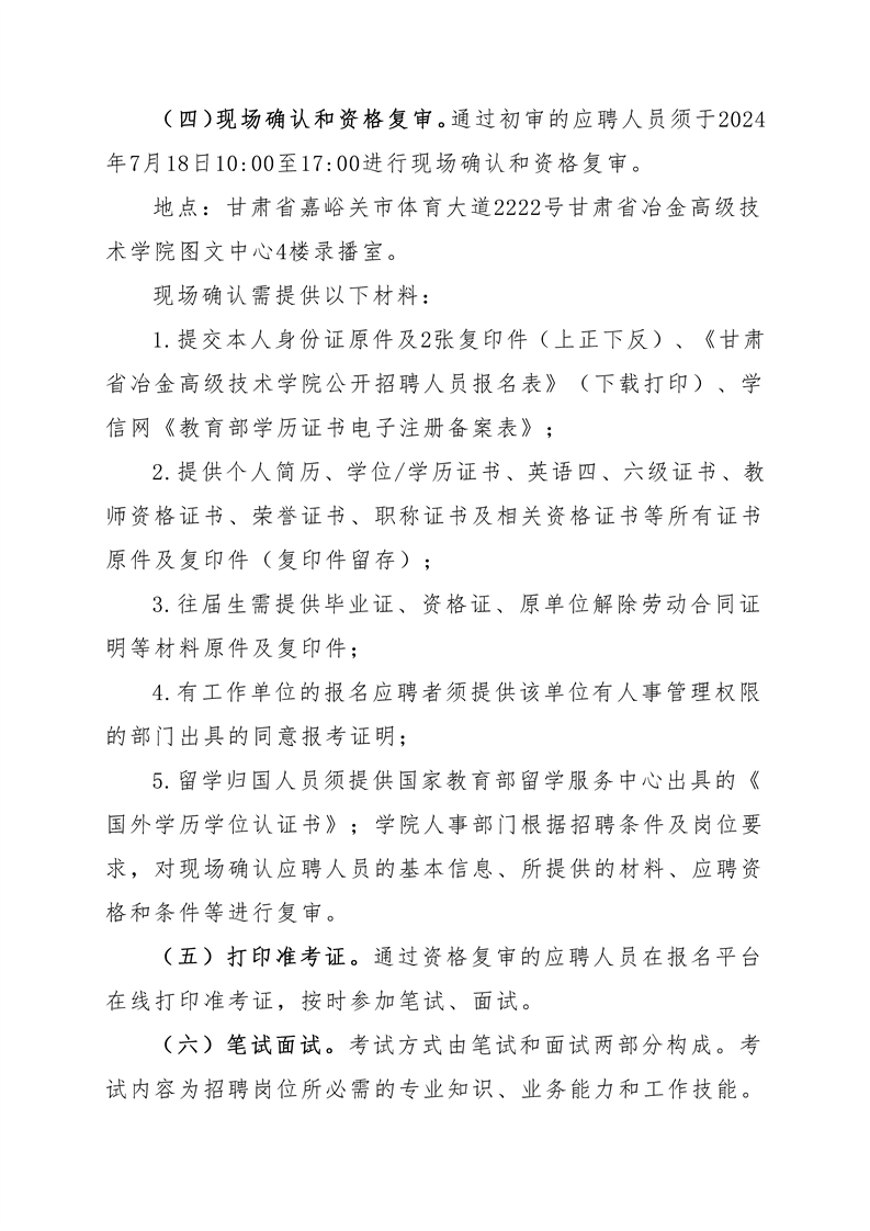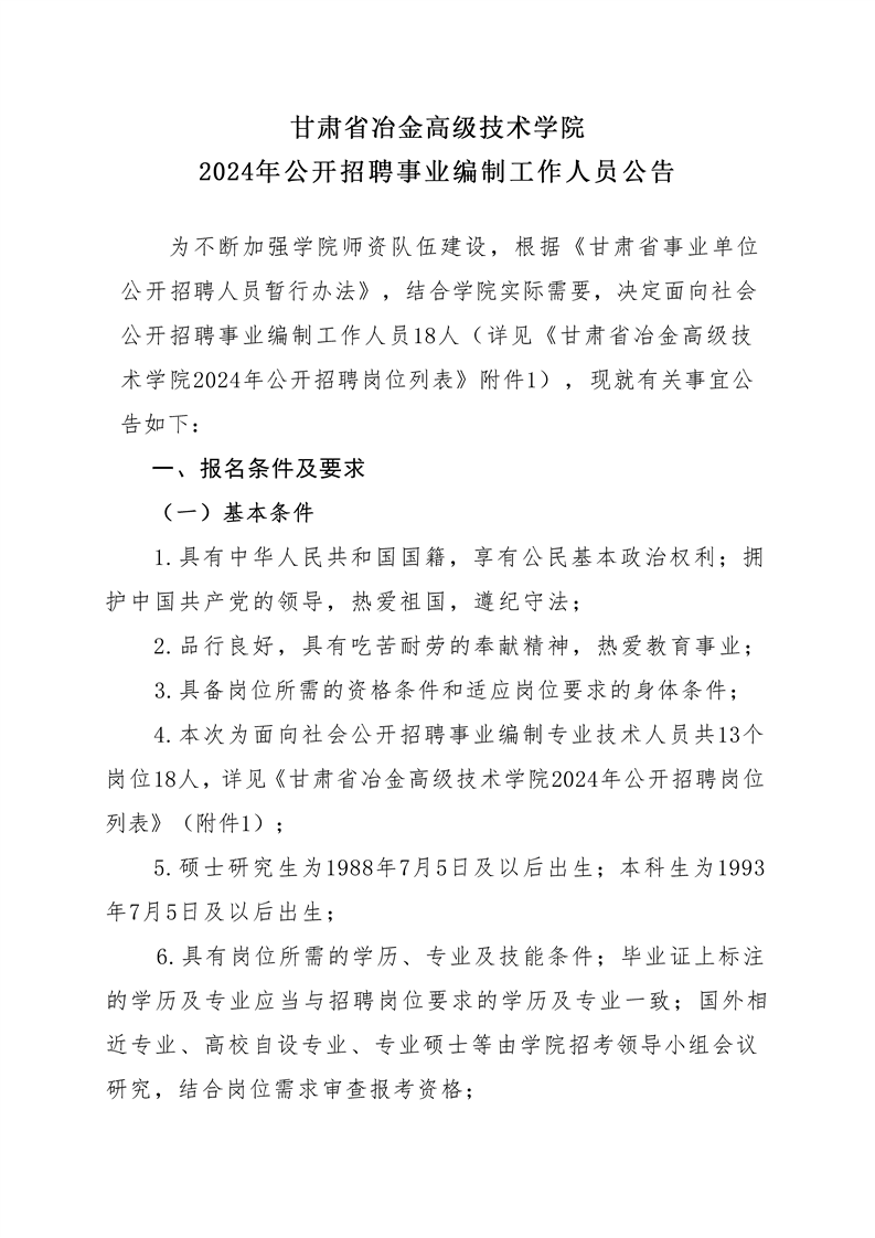 甘肅省冶金高級(jí)技術(shù)學(xué)院2024年公開(kāi)招聘崗位列表 -公告.pdf
