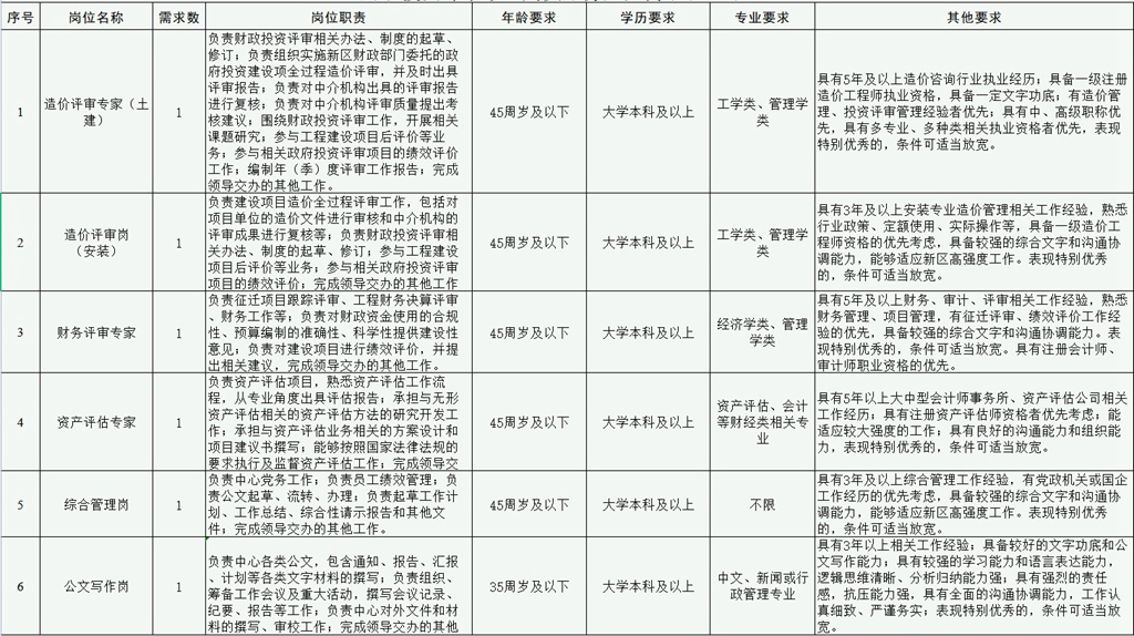 2022-09-13 11:30:41閱讀()中國(guó)雄安河北京雄政務(wù)服務(wù)外包有限公司根據(jù)工作需要,現(xiàn)面向社會(huì)公開(kāi)招聘6名業(yè)務(wù)外包員工,派駐至雄安新區(qū)有關(guān)部門工作,工作地點(diǎn)在雄安新區(qū),從事綜合文字、財(cái)務(wù)審核、造價(jià)審核、固定資產(chǎn)評(píng)估等相關(guān)工作。