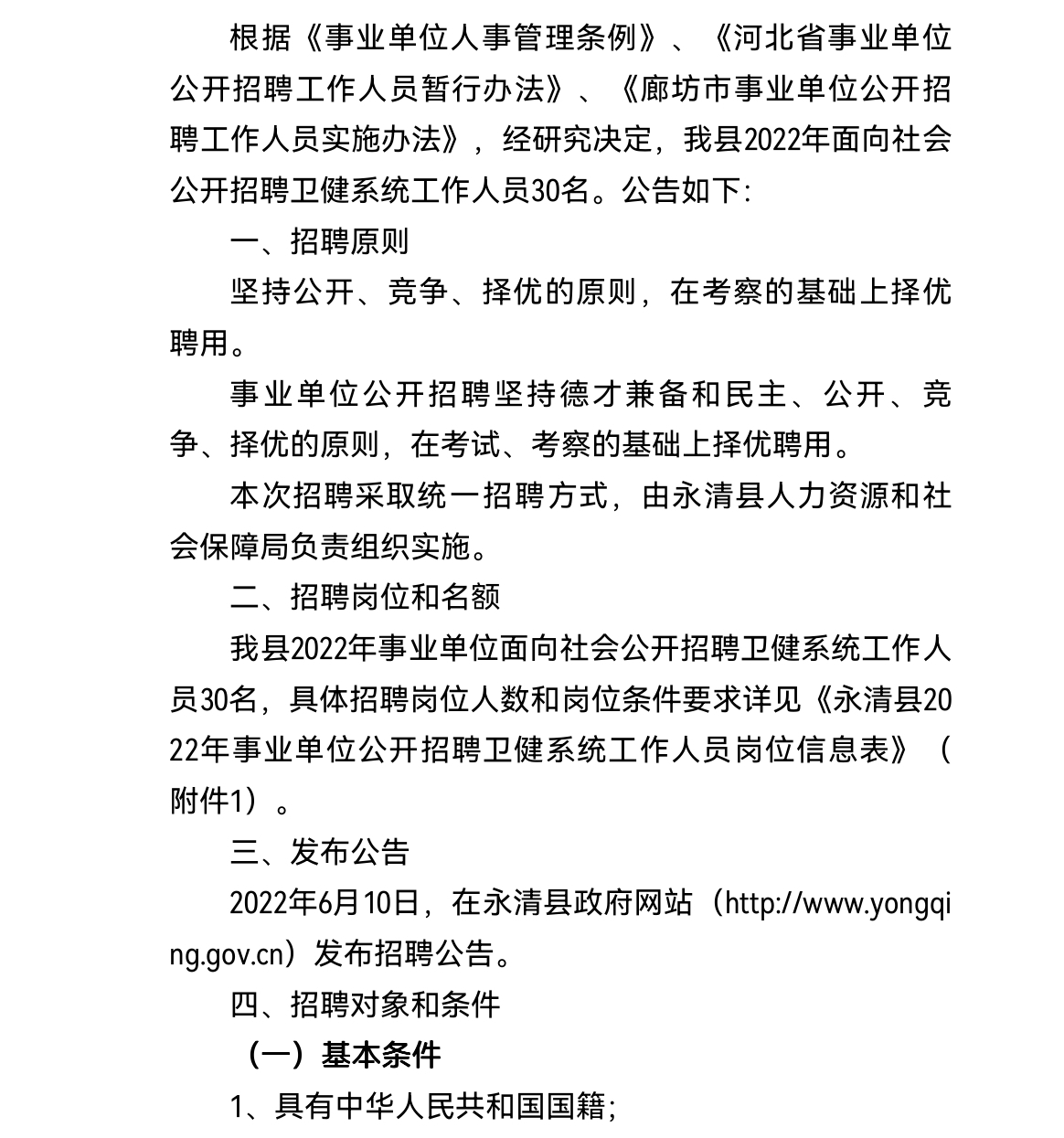 2022年廊坊永清縣事業(yè)單位公開招聘衛(wèi)健系統(tǒng)工作人員公告