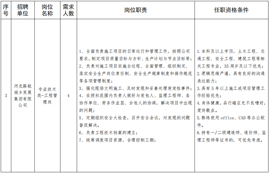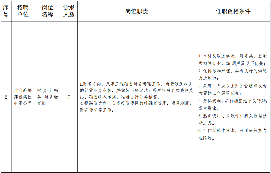 附件:邢臺市交通建設(shè)集團有限公司2024年度社會招聘所屬企業(yè)崗位簡要