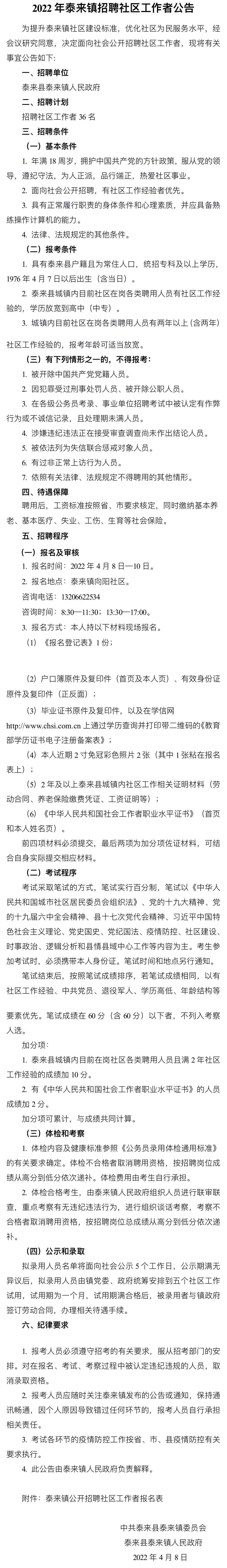 2022-04-10 23:50:19閱讀()泰來黨建為提升泰來鎮(zhèn)社區(qū)建設標準,優(yōu)化社區(qū)為民服務水平,經(jīng)會議研究同意,決定面向社會公開招聘社區(qū)工作者,現(xiàn)將有關事宜公告如下: