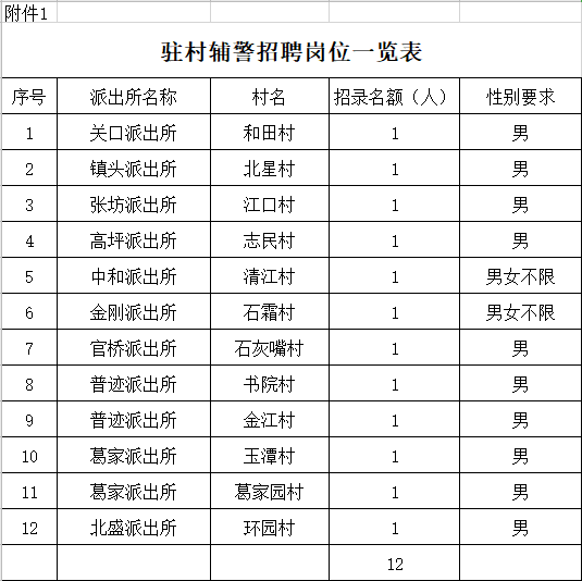 (二)輔警崗位三(駐村輔警12人,具體崗位見附件)