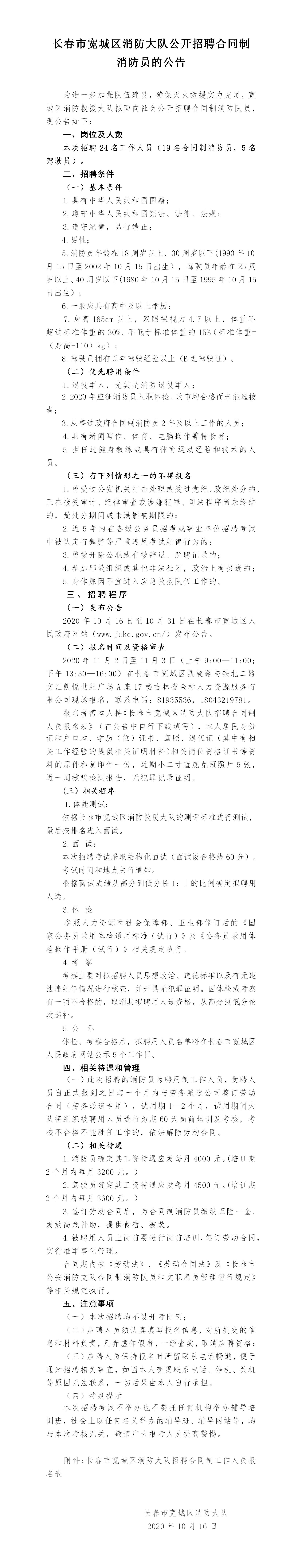 2020年長春市寬城區(qū)消防大隊公開招聘合同制消防員公告