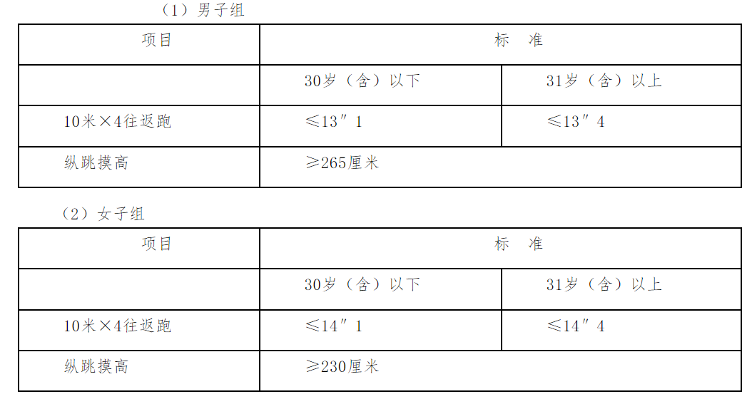 測(cè)試方法為:準(zhǔn)備測(cè)試階段,受測(cè)者雙腳自然分開(kāi),呈站立姿勢(shì)。接到指令后,受測(cè)者屈腿半蹲,雙臂盡力后擺,然后向前上方快速擺臂,雙腿同時(shí)發(fā)力,盡力垂直向上起跳,同時(shí)單手舉起觸摸固定的高度線或高度標(biāo)識(shí),觸摸到高度線或者高度標(biāo)識(shí)的視為合格。測(cè)試不超過(guò)三次。