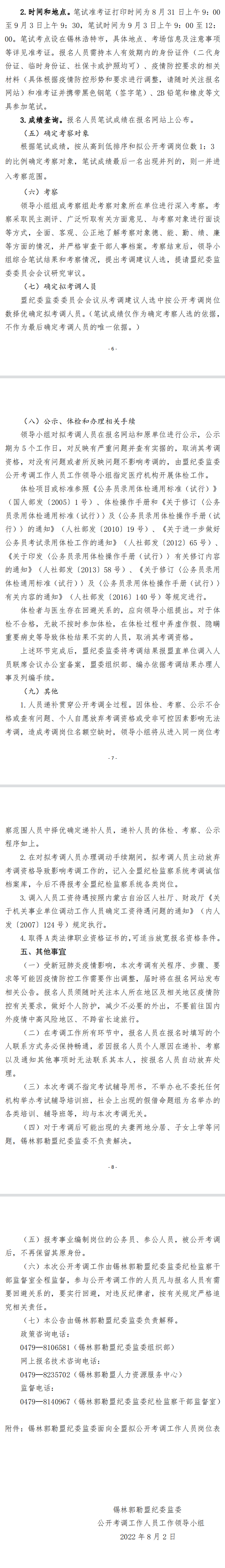 2022年錫林郭勒盟紀(jì)委監(jiān)委公開(kāi)考調(diào)機(jī)關(guān)事業(yè)單位工作人員公告