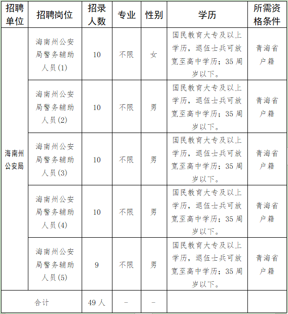 2022年海南州公安局面向社會(huì)公開招聘警務(wù)輔助人員公告