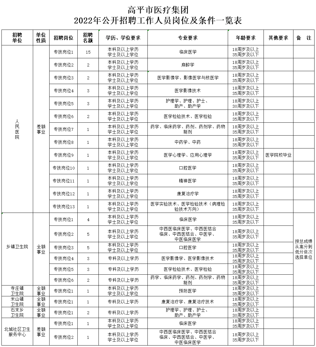 1.高平市醫(yī)療集團2022年公開招聘工作人員崗位及條件一覽表