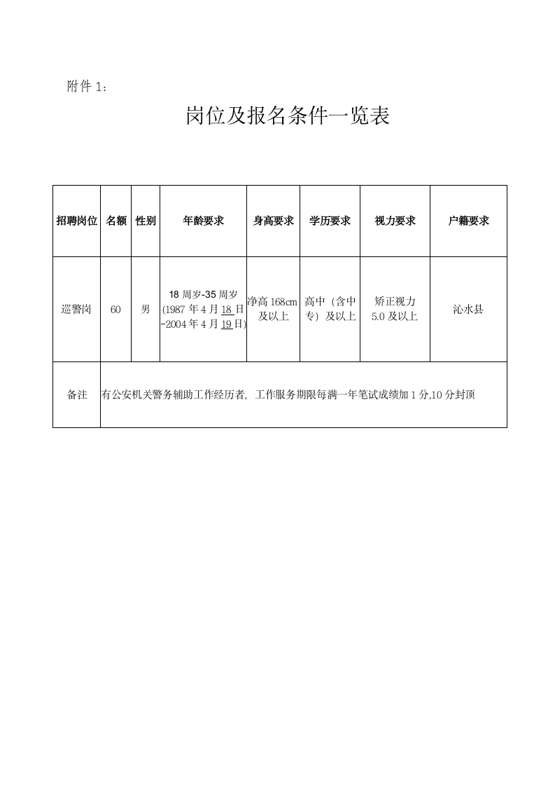 公安巡警60名,具體崗位情況詳見“崗位及報名條件一覽表”(附件1)。