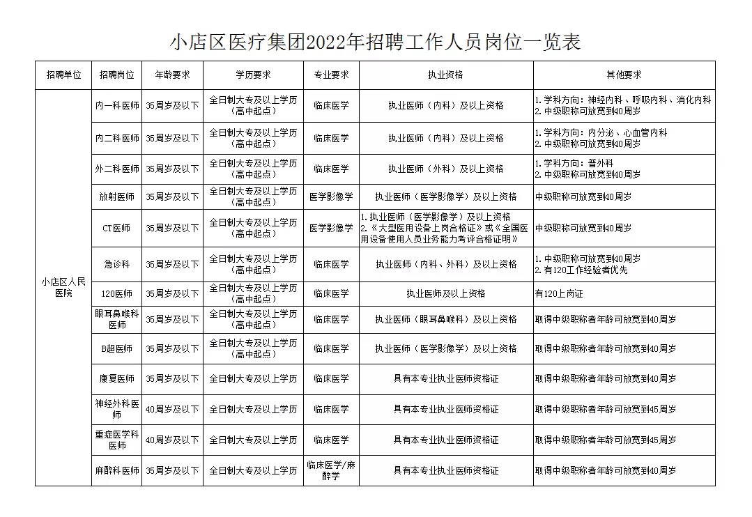 附件1:小店區(qū)醫(yī)療集團(tuán)2022年招聘工作人員崗位一覽表