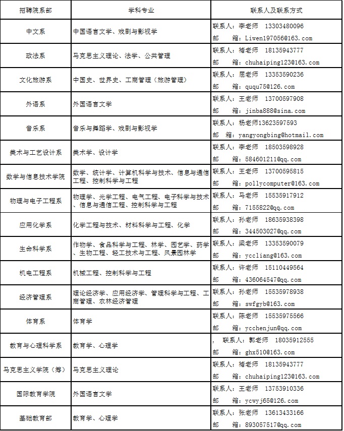 符合條件的國(guó)內(nèi)外高校畢業(yè)的博士研究生通過電子郵箱報(bào)名應(yīng)聘,應(yīng)聘人員請(qǐng)將個(gè)人簡(jiǎn)歷電子版發(fā)送至各院系部聯(lián)系人電子郵箱和ycxyrsc@ycu.edu.cn。應(yīng)聘者郵件標(biāo)題格式統(tǒng)一要求為:崗位+姓名+性別+學(xué)科(專業(yè))。