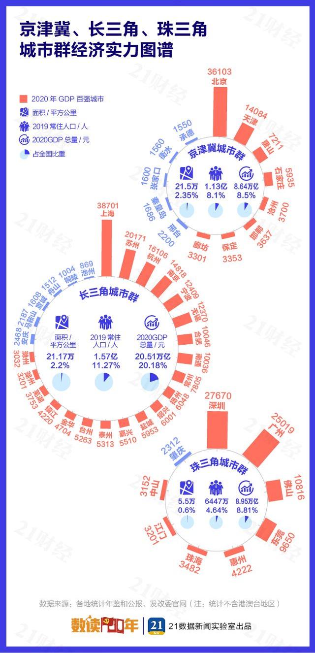 從經(jīng)濟體量來看,在19大國家級城市群中,長三角、珠三角、京津冀城市群的經(jīng)濟發(fā)展最為活躍。這三大城市群包含48個,以全國5%的土地面積吸納了約24的人口,貢獻了近四成的經(jīng)濟總量。