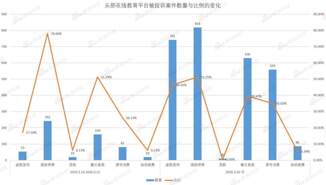 退費退課相關的投訴依然排名第一,總量為818起,占比為51.25%;涉嫌霸王條款的投訴量位列第二,總量為630起,占比下降至39.47%