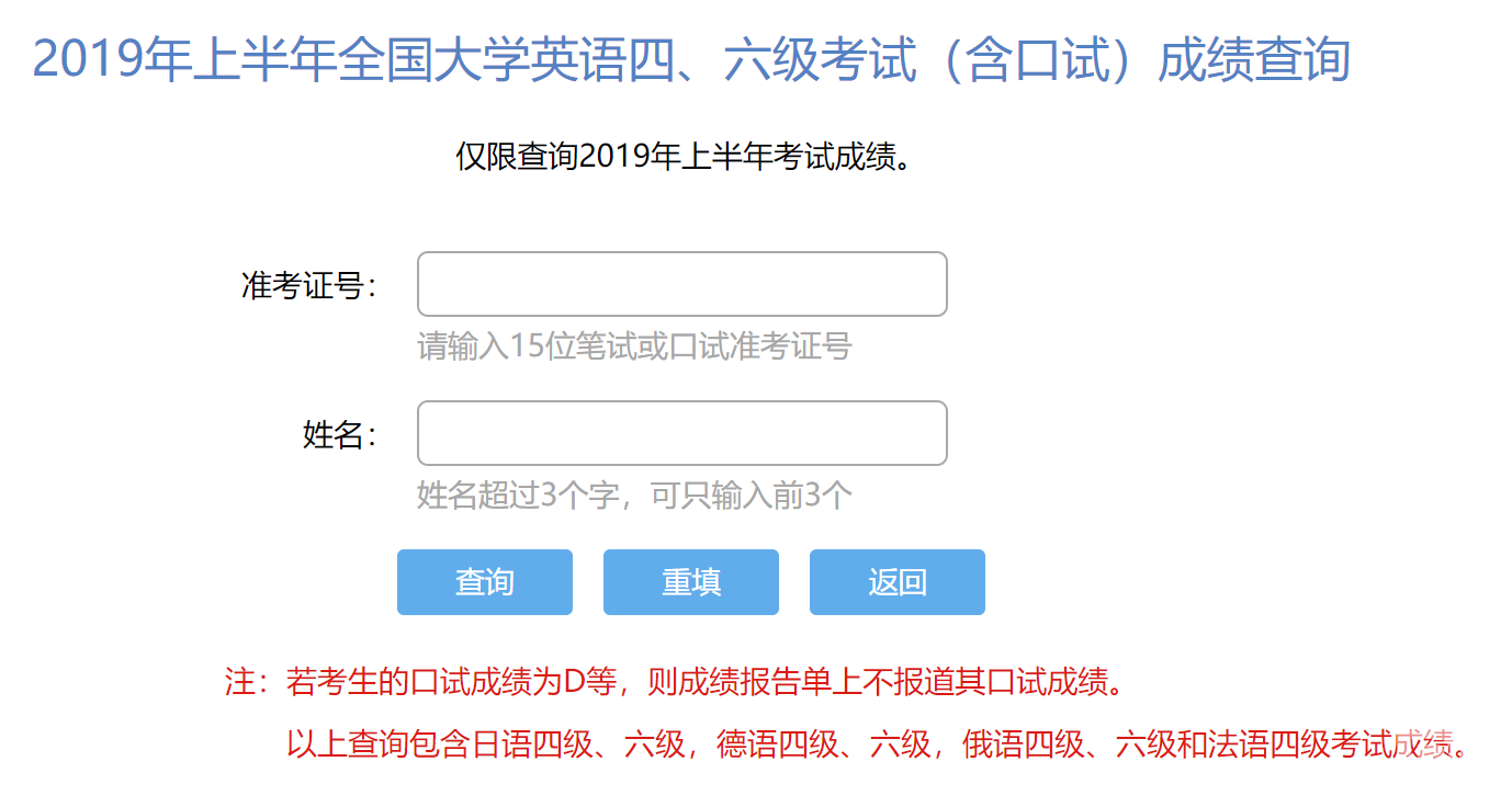 2019年上半年全國(guó)大學(xué)英語(yǔ)四、六級(jí)考試成績(jī)查詢