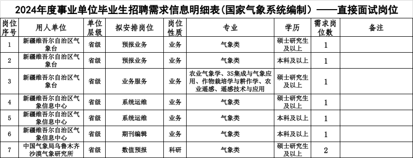 2024年新疆維吾爾自治區(qū)氣象局事業(yè)單位公開招聘應屆畢業(yè)生公告(第二批)