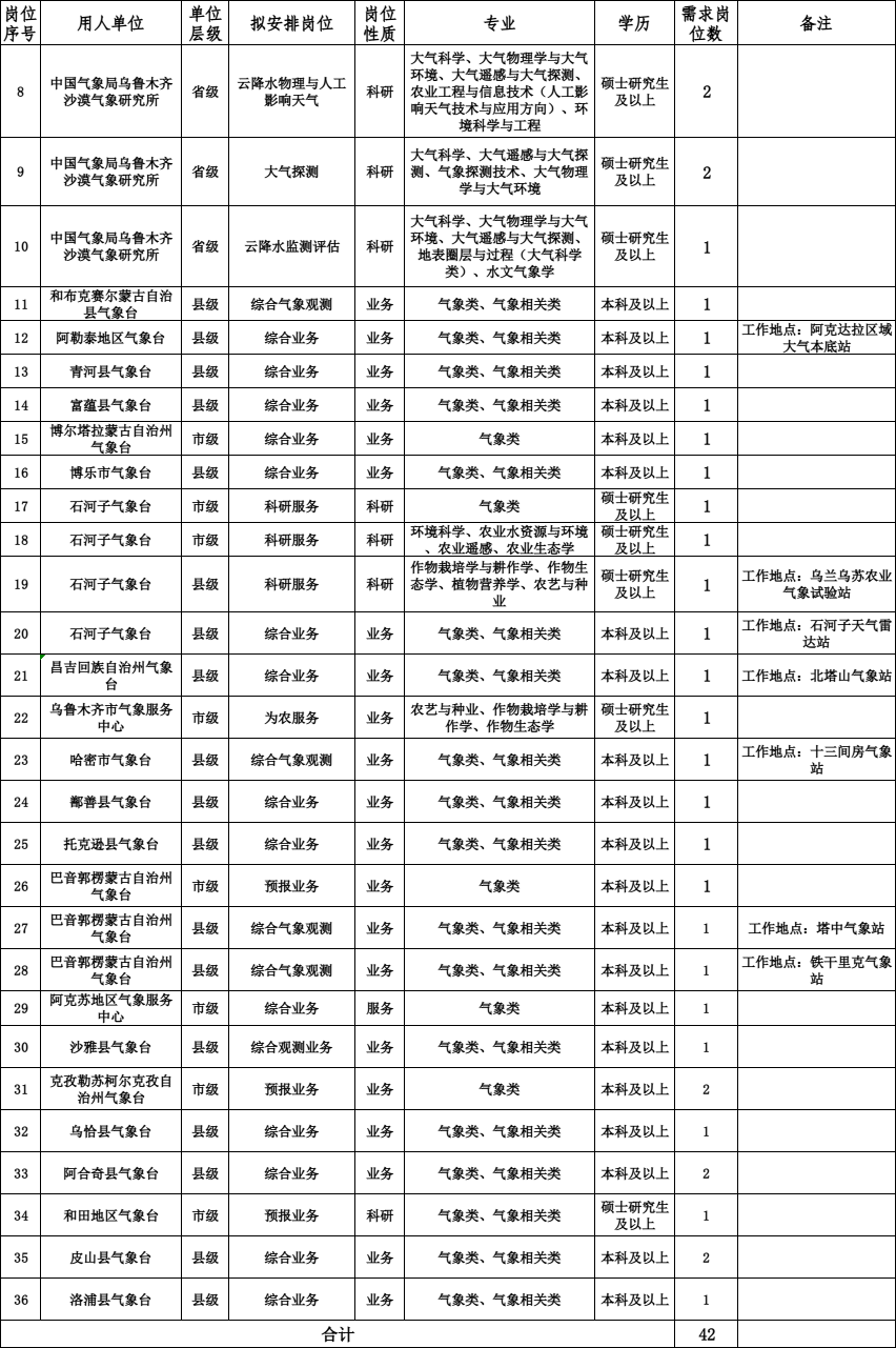 2024-03-12 17:09:00閱讀()新疆維吾爾自治區(qū)氣象局根據《氣象部門事業(yè)單位公開招聘人員管理辦法》,為加強新疆氣象人才隊伍建設,滿足新疆氣象事業(yè)發(fā)展需要,現面向各高等院校、科研院所應屆畢業(yè)生招聘事業(yè)編制工作人員,有關事項公告如下:
