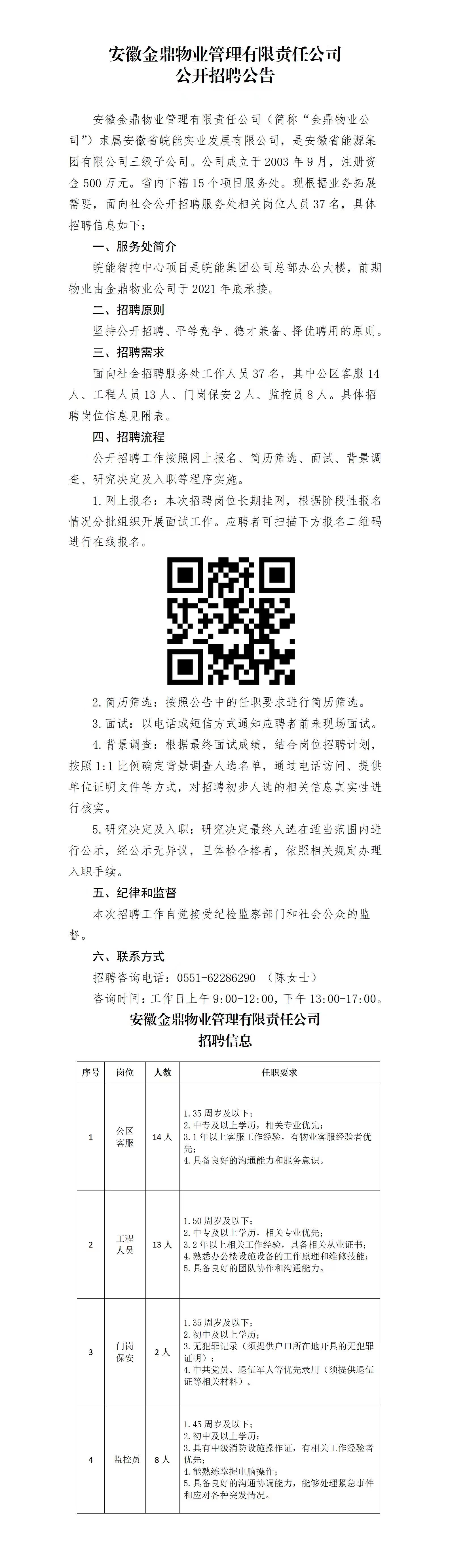 2024年安徽金鼎物業(yè)管理有限責任公司公開招聘公告