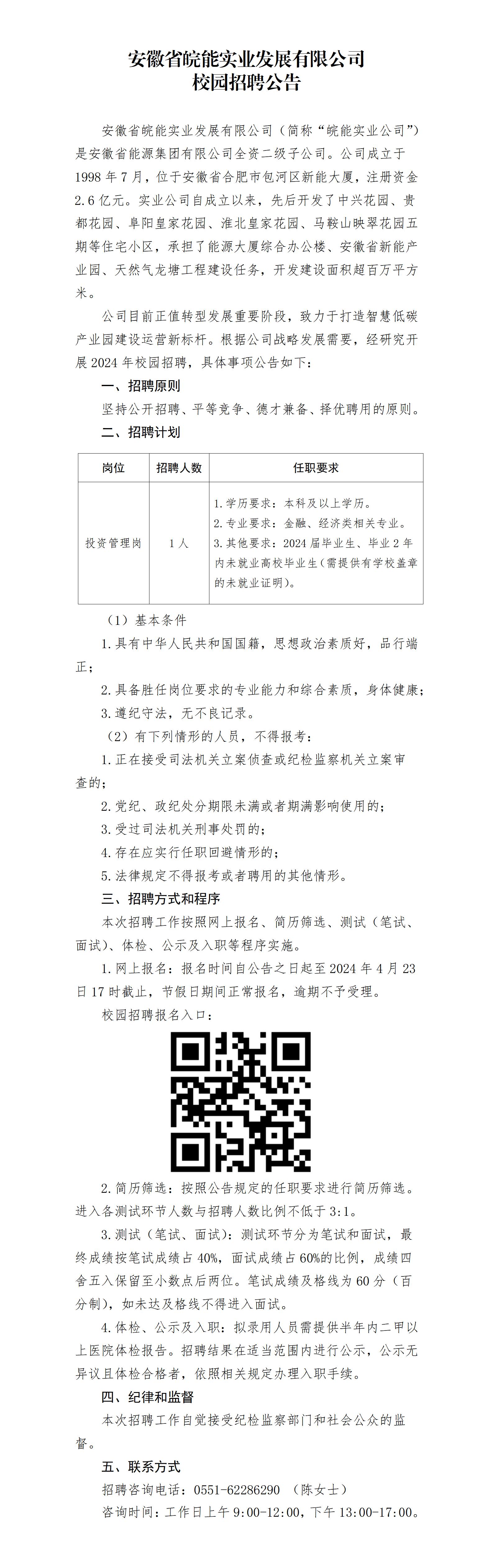 2024年安徽皖能實(shí)業(yè)發(fā)展有限公司校園招聘公告