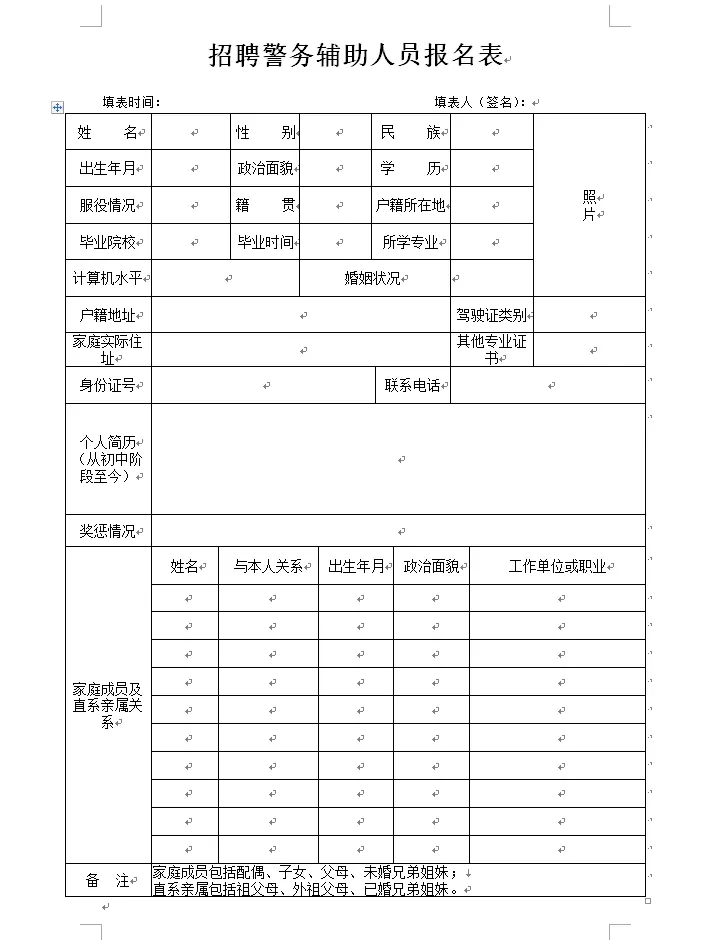 (二)填寫《2020年秋季招聘警務輔助人員報名表》一式兩份(可從附件中自行下載填寫)。