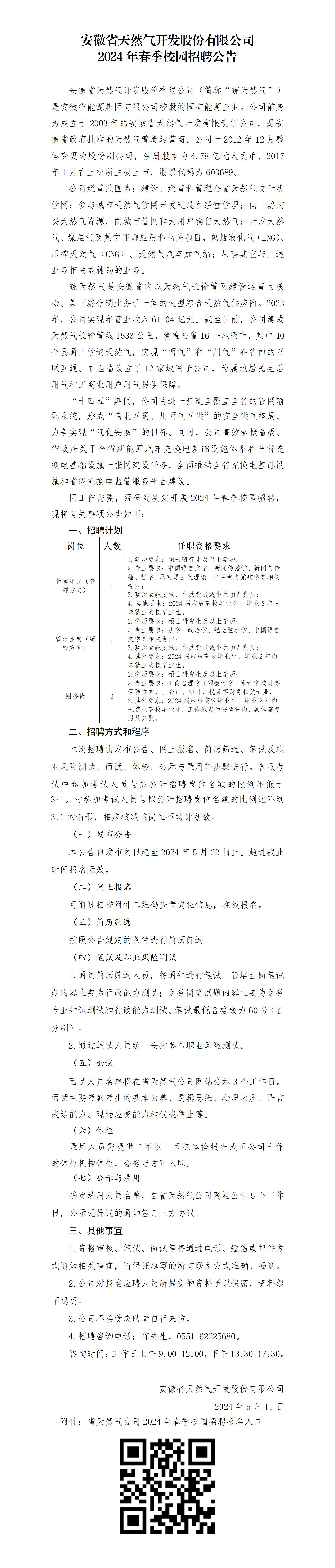 2024年安徽省天然氣開發(fā)股份有限公司春季校園招聘公告
