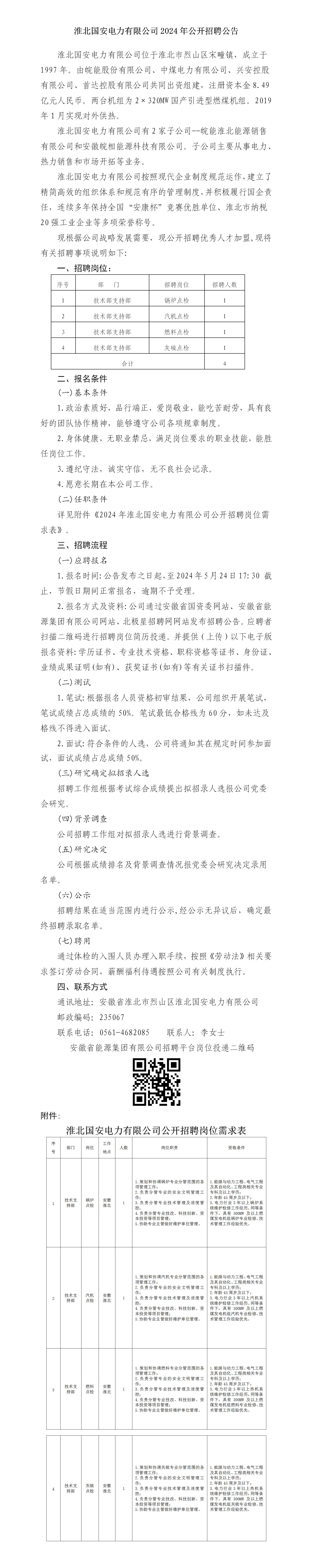 2024年淮北國(guó)安電力有限公司公開招聘公告