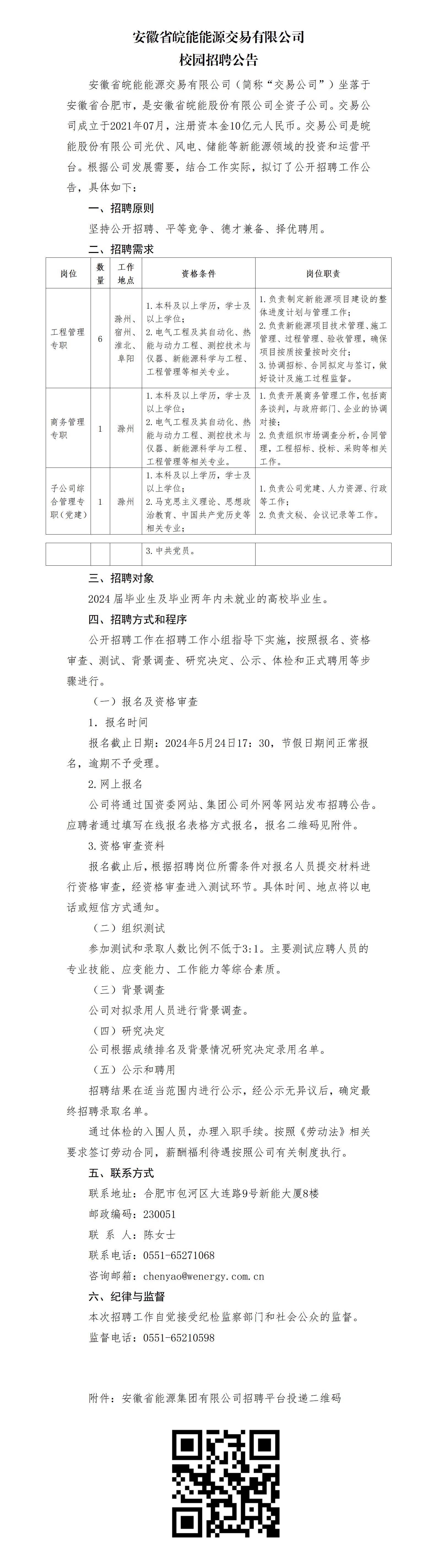 2024年安徽省皖能能源交易有限公司校園招聘公告