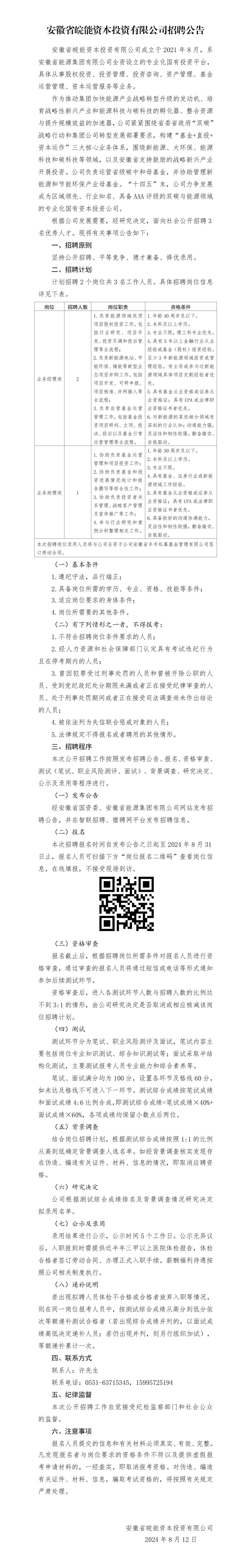 根據(jù)公司發(fā)展需要,經(jīng)研究決定,面向社會(huì)公開(kāi)招聘3名優(yōu)秀人才?,F(xiàn)將有關(guān)事項(xiàng)公告如下: