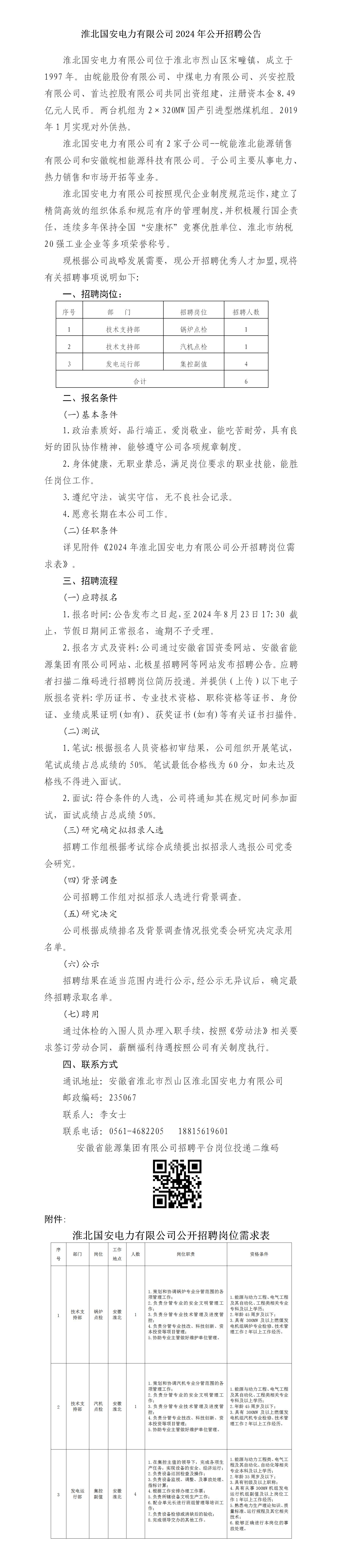 2024年淮北國安電力有限公司公開招聘公告