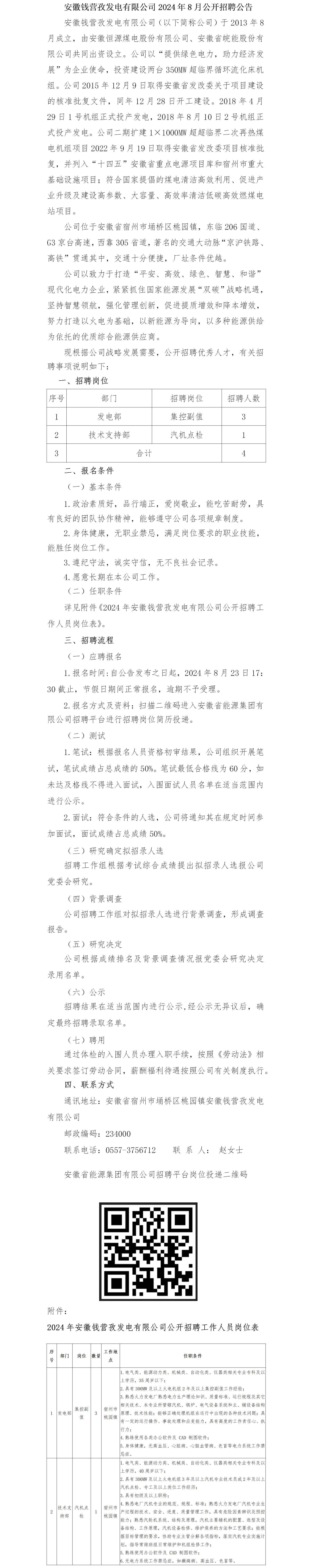 2024年宿州安徽錢營(yíng)孜發(fā)電有限公司開(kāi)招聘公告