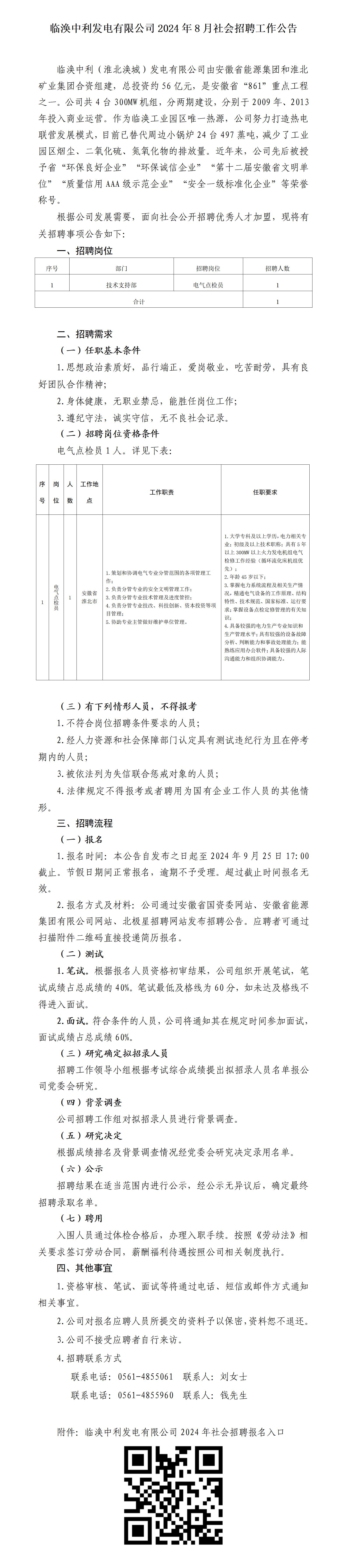 2024年淮北臨渙中利發(fā)電有限公司社會(huì)招聘工作公告