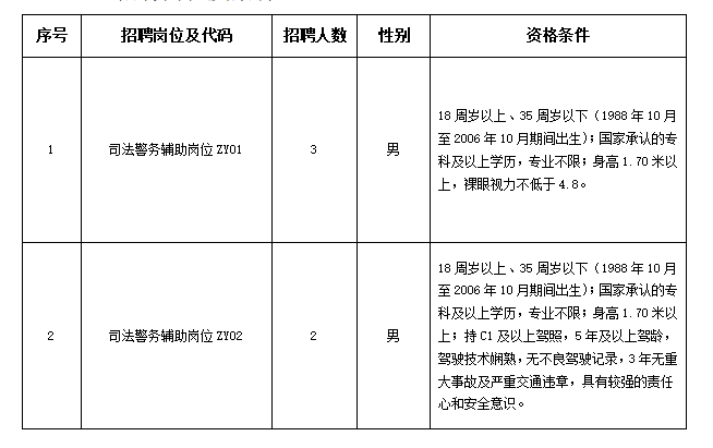 招聘方式:司法警務輔助崗位(ZY01)實行筆試、體能測試和面試、考察相結合的辦法,司法警務輔助崗位(ZY02)實行筆試、體能測試、駕駛技能測試和面試、考察相結合的辦法,按照發(fā)布公告、公開報名與資格初審、筆試、體能測試(或技能測試)、面試、體檢、考察、公示、聘用等程序進行。