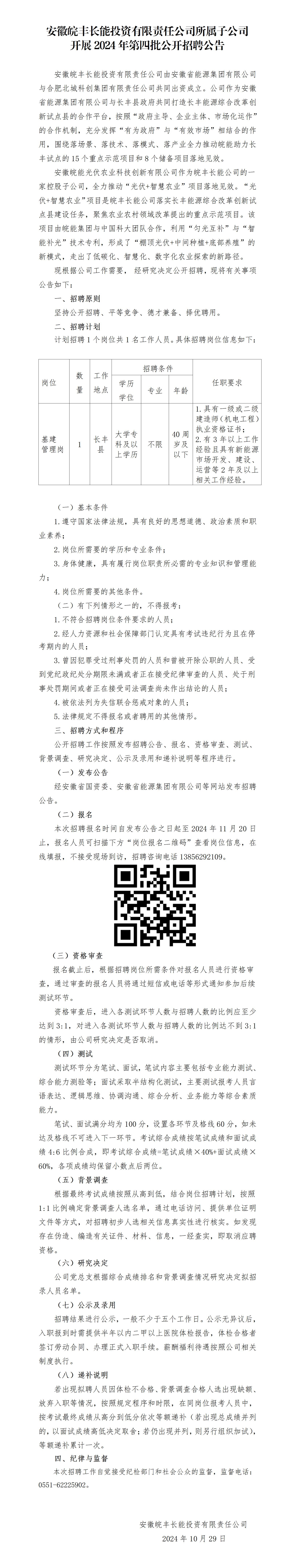 2024年安徽皖豐長(zhǎng)能投資有限責(zé)任公司所屬子公司開(kāi)展第四批公開(kāi)招聘公告