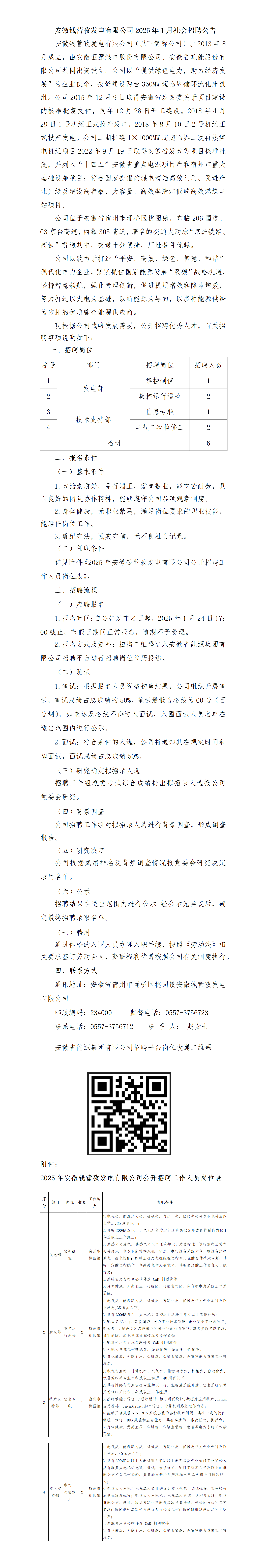 2025年安徽錢營(yíng)孜發(fā)電有限公司1月社會(huì)招聘公告