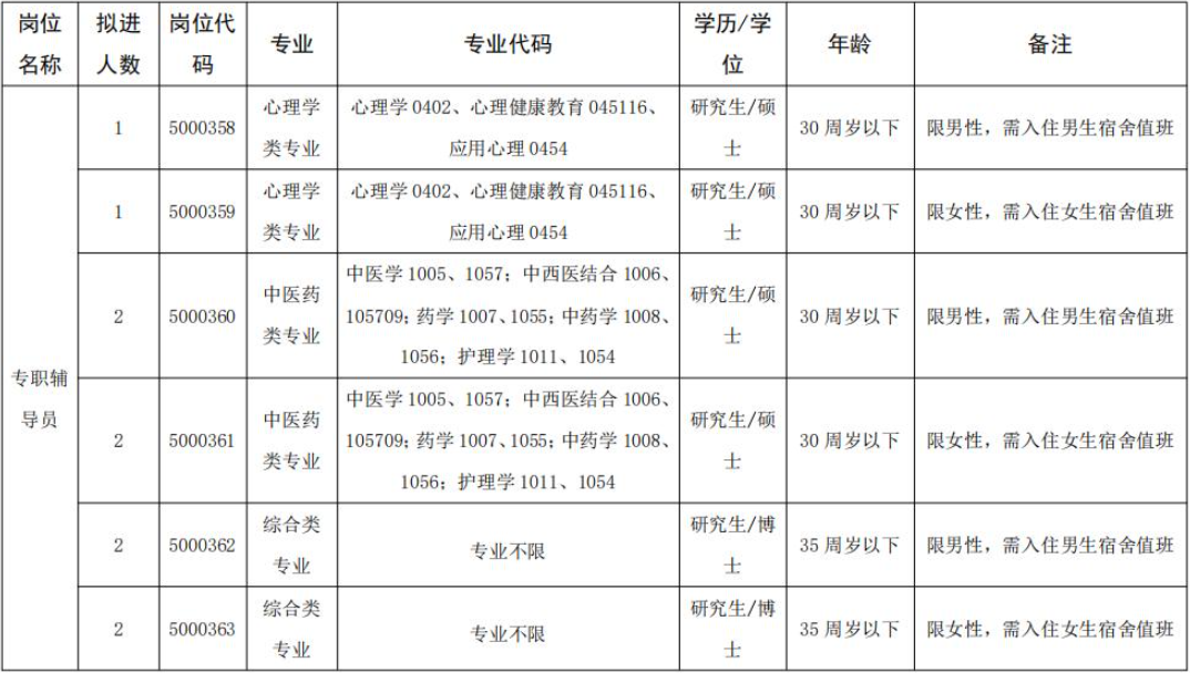 2025-04-11 10:15:01閱讀()安徽中醫(yī)藥大學(xué)安徽中醫(yī)藥大學(xué)2025年度專(zhuān)職輔導(dǎo)員公開(kāi)招聘公告為進(jìn)一步加強(qiáng)我校專(zhuān)職輔導(dǎo)員隊(duì)伍建設(shè),根據(jù)《事業(yè)單位人事管理?xiàng)l例》(國(guó)務(wù)院令第652號(hào))、中共安徽省委組織部、安徽省人力資源和社會(huì)保障廳《關(guān)于印發(fā)〈安徽省事業(yè)單位公開(kāi)招聘人員暫行辦法〉的通知》(皖人社發(fā)〔2010〕78號(hào))等文件精神,現(xiàn)將2025年度編制內(nèi)專(zhuān)職輔導(dǎo)員公開(kāi)招聘公告有關(guān)事項(xiàng)公告如下: