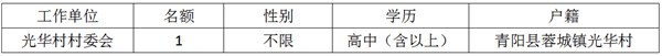 2025年池州青陽縣蓉城鎮(zhèn)光華村公開招聘臨時工作人員公告