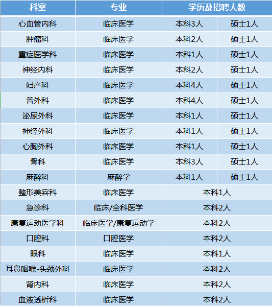 現(xiàn)因業(yè)務(wù)持續(xù)快速發(fā)展的需要,現(xiàn)面向校園和社會廣納人才,我們熱切地期待有識之士的加盟,醫(yī)院將為您提供廣闊的視野發(fā)展機遇和平臺。