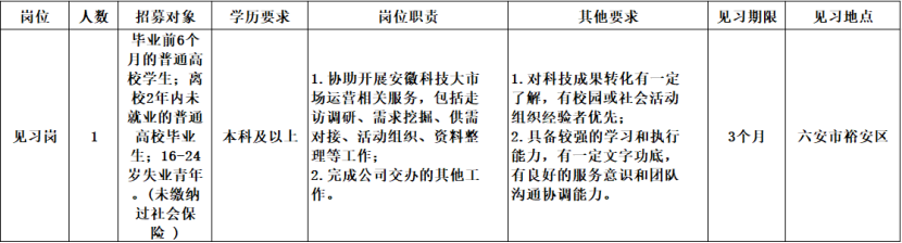 因工作需要,經(jīng)安徽科技大市場建設(shè)運營有限責(zé)任公司研究決定,委托安徽皖信人力資源管理有限公司公開招募1名見習(xí)人員?,F(xiàn)就有關(guān)事項公告如下: