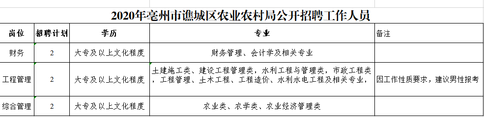亳州市譙城區(qū)農(nóng)業(yè)農(nóng)村局公開招聘6名工作人員,現(xiàn)將招聘事項(xiàng)公告如下: