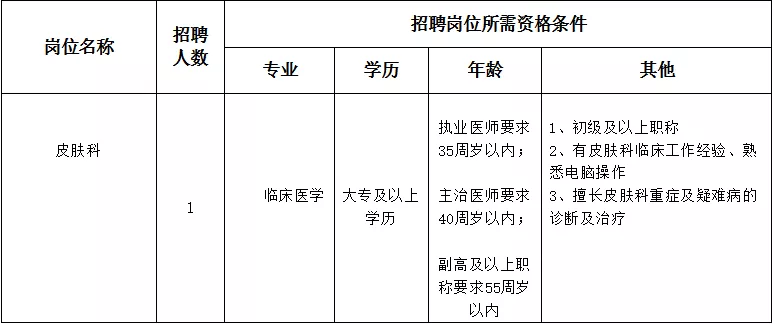 因?qū)W科建設(shè)和業(yè)務(wù)發(fā)展需要,經(jīng)研究,醫(yī)院面向社會公開招聘皮膚科衛(wèi)生專業(yè)技術(shù)人員?,F(xiàn)將有關(guān)事項(xiàng)公告如下: