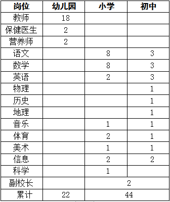 2021年面向全國公開招聘公辦教師、民辦教師、應(yīng)屆大學(xué)畢業(yè)生及管理人員66名。