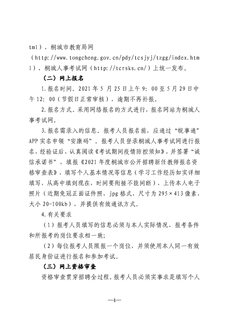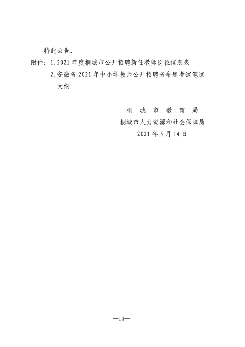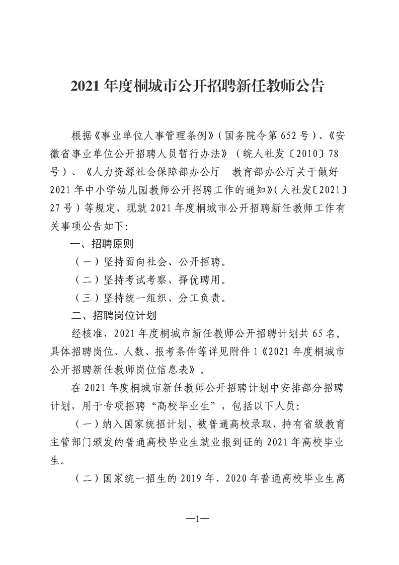 2021年安慶桐城市公開招聘新任教師公告