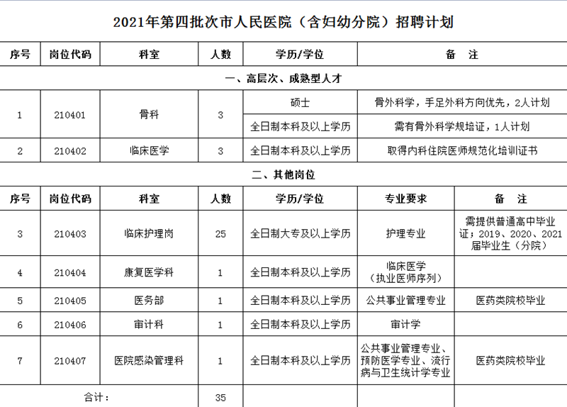 2021-07-22 10:17:19閱讀()宣城市人民醫(yī)院為滿足市人民醫(yī)院及市婦幼保健院發(fā)展需要,加強(qiáng)人才隊伍建設(shè),按照公開、平等、競爭、擇優(yōu)的原則,面向社會公開招聘工作人員,現(xiàn)將有關(guān)事項通知如下。