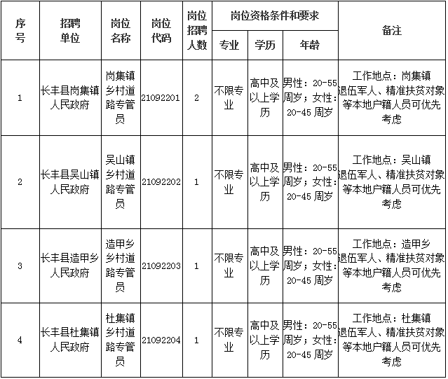 6.原則上不跨越鄉(xiāng)鎮(zhèn)(區(qū))招募,就近從轄區(qū)內(nèi)常住人員中選聘。同等條件下退伍軍人、精準(zhǔn)扶貧對(duì)象等本地戶籍人員可優(yōu)先考慮。