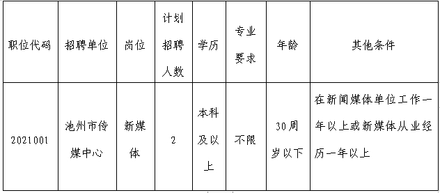 (三)本公告由池州市傳媒中心負(fù)責(zé)解釋。未盡事宜按照《安徽省事業(yè)單位公開招聘人員暫行辦法》執(zhí)行。