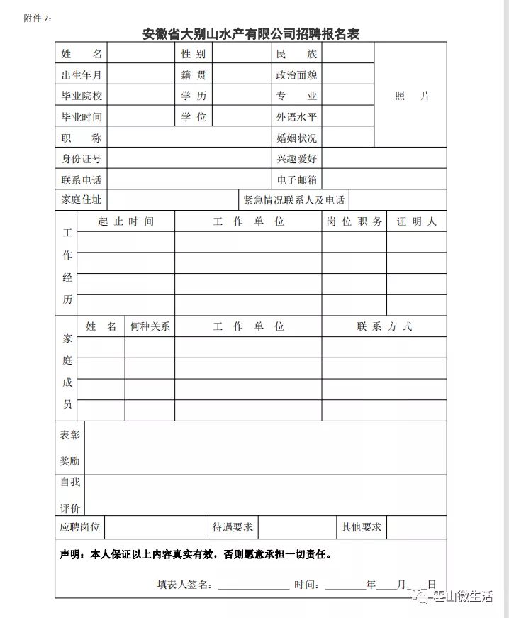 2、安徽省大別山水產(chǎn)有限公司招聘報(bào)名表