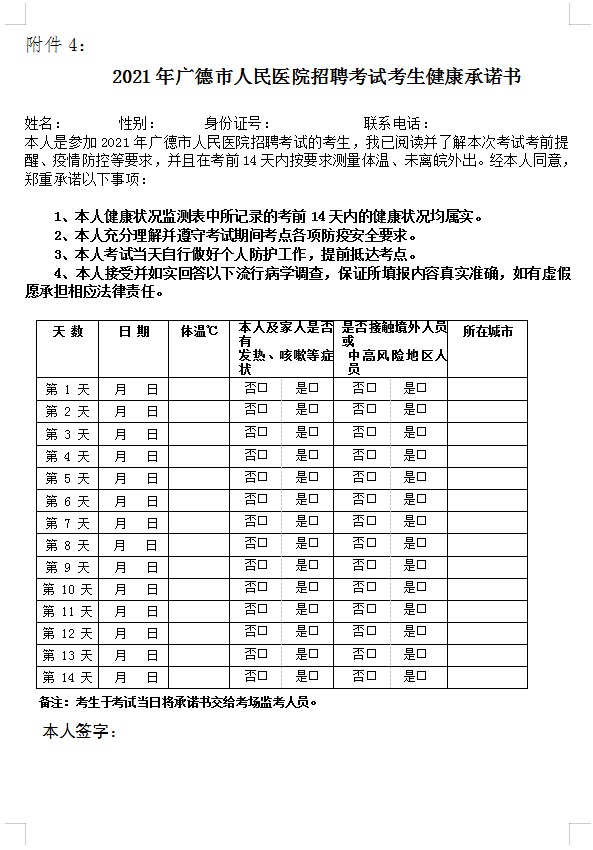 考試時(shí)間將在廣德市人民醫(yī)院官網(wǎng)上另行通知。