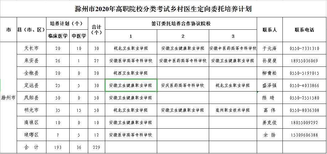 2020-05-12 19:28:19閱讀()滁州市衛(wèi)生健康委員會為加強(qiáng)基層醫(yī)療機(jī)構(gòu)鄉(xiāng)村醫(yī)生隊伍建設(shè),創(chuàng)新完善村醫(yī)隊伍培養(yǎng)機(jī)制,根據(jù)《關(guān)于印發(fā)在安徽省高職院校分類考試中實施鄉(xiāng)村醫(yī)生定向委托培養(yǎng)三年行動計劃方案的通知》(皖衛(wèi)科教發(fā)〔2020〕1號)精神,為進(jìn)一步做好2020年在高職院校分類考試中開展鄉(xiāng)村醫(yī)生定向委托項目,現(xiàn)公布滁州市2020年鄉(xiāng)村醫(yī)生定向委托培養(yǎng)計劃,符合條件有意向的考生請與戶籍所在地衛(wèi)生健康委聯(lián)系,并于2020年5月11日10:00至5月15日16:00登陸網(wǎng)站http://gkbm.ahzsks.cn填報志愿。