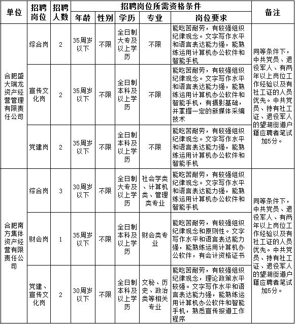 2021年合肥盛大瑞龍資產(chǎn)經(jīng)營(yíng)管理有限責(zé)任公司、合肥南方集體資產(chǎn)經(jīng)營(yíng)有限責(zé)任公司招聘