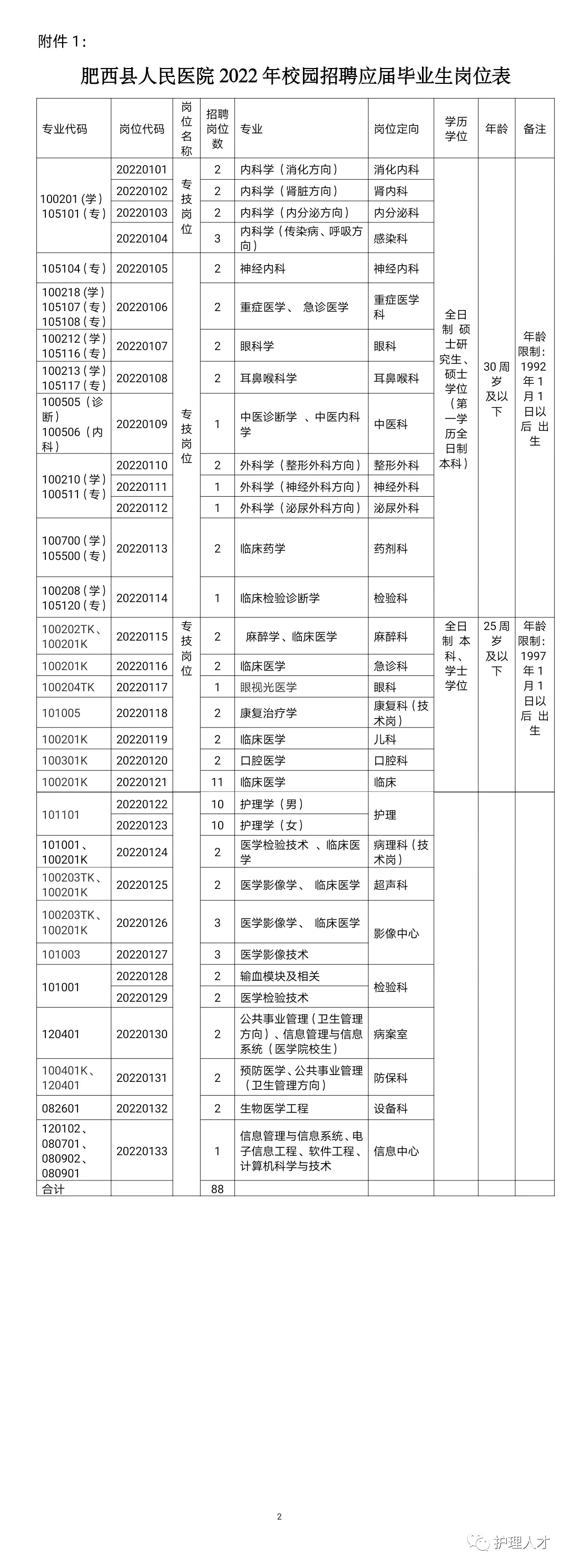 本次招聘專業(yè)技術(shù)人員共88名(詳見附件)。